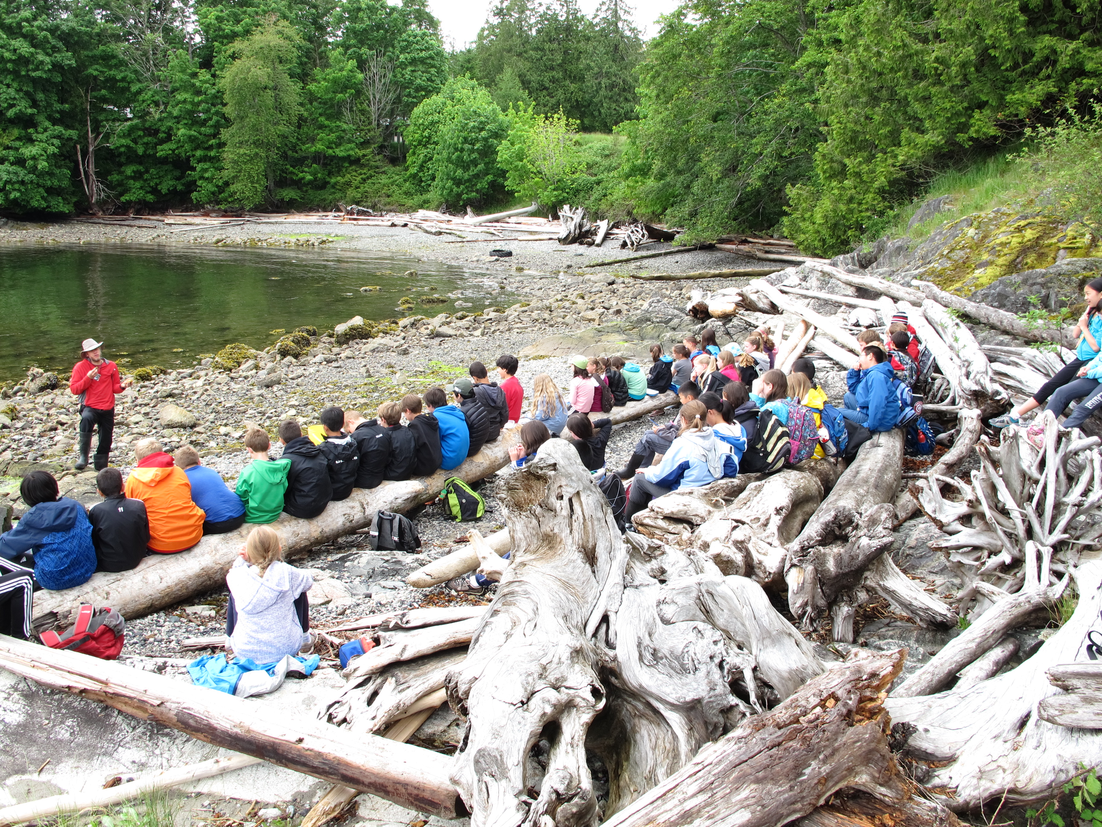 My experience at Sea to Sky was different. Where other programs emphasize Outdoor activities, the Islanders focussed on Education. The learning was centred around the points of the compass and each point represented an old way, and a new way of thinking about the environment. Each morning and afternoon we had circle time where a point of the compass was introduced to the students in an engaging, entertaining, interactive and purposeful manner. This was followed by activities and discussion that reinforced the message of the lessons. Through their involvement in the natural classroom the students demonstrated incredible enthusiasm for their learning. Our students knew the names of every slug they placed on their face, were mindful to point out creatures on their hikes to protect them from being stepped on, frequently asked interesting questions about the environment around them, and happily engaged in group discussions. It was authentic learning at it’s best.