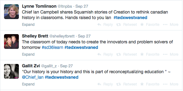 Beyond creating a day of inspiration through the stories of our speakers, we mindfully created an environment for conversation. Through our Partners we created “conversation spots”, coffee stops, a remodelled school cafeteria designed for an idea sharing lunch and opportunities for people to share personally and electronically. Through our #TEDxWestVanEd (and the misspelled #TEDexWestVanED) hashtags as well as our Padlets, our Participants were able to share ideas worth spreading with one another and those around the world.